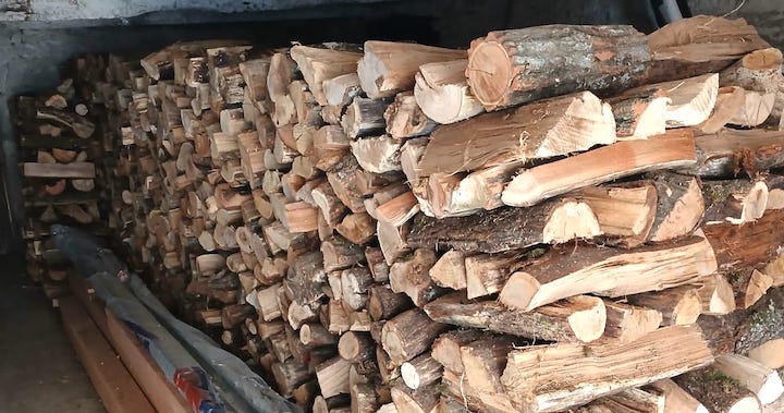 Le stock de bois en 50 cm pour la chaudière, photo Isabelle et Laurent