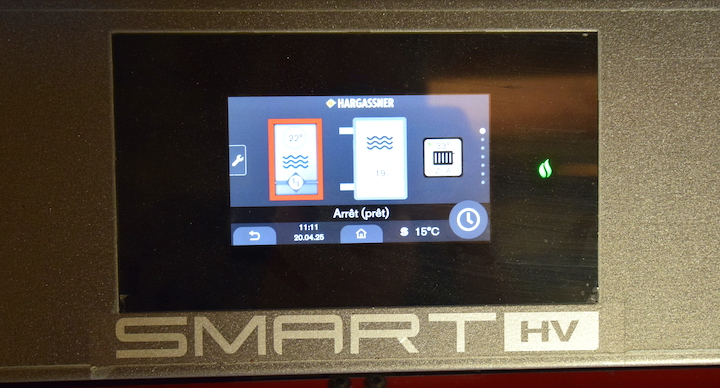 L’écran de contrôle et commandes tactile en couleur Smart Touch’, ici chaudière à l’arrêt, photo Frédéric Douard