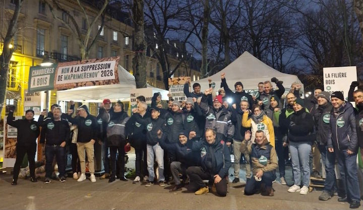 Cette réponse ne satisfait pas le Syndicat Français des Chaudiéristes Biomasse (SFCB) qui s’est mobilisé le jour même, sous les fenêtres de l’Assemblée et du Sénat, pour demander la réintégration sans délai de ses solutions de chauffage “performantes, sûres, économiques et décarbonées” au sein de la principale aide de l’Etat aux travaux de rénovation énergétique des particuliers.