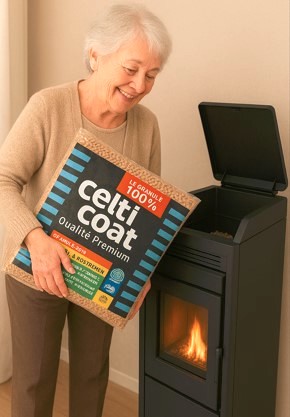 Celticoat propose des granulés de bois en sacs de 10 kg pour plus de facilité de manutention