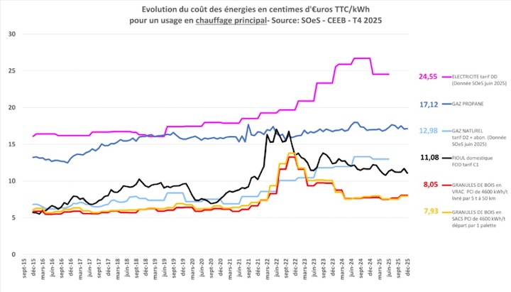 Le granulé reste donc une énergie compétitive. Le prix du kWh granulé demeure largement inférieur à celui de l’électricité et des énergies fossiles, un avantage qui continue de séduire de nombreux ménages.